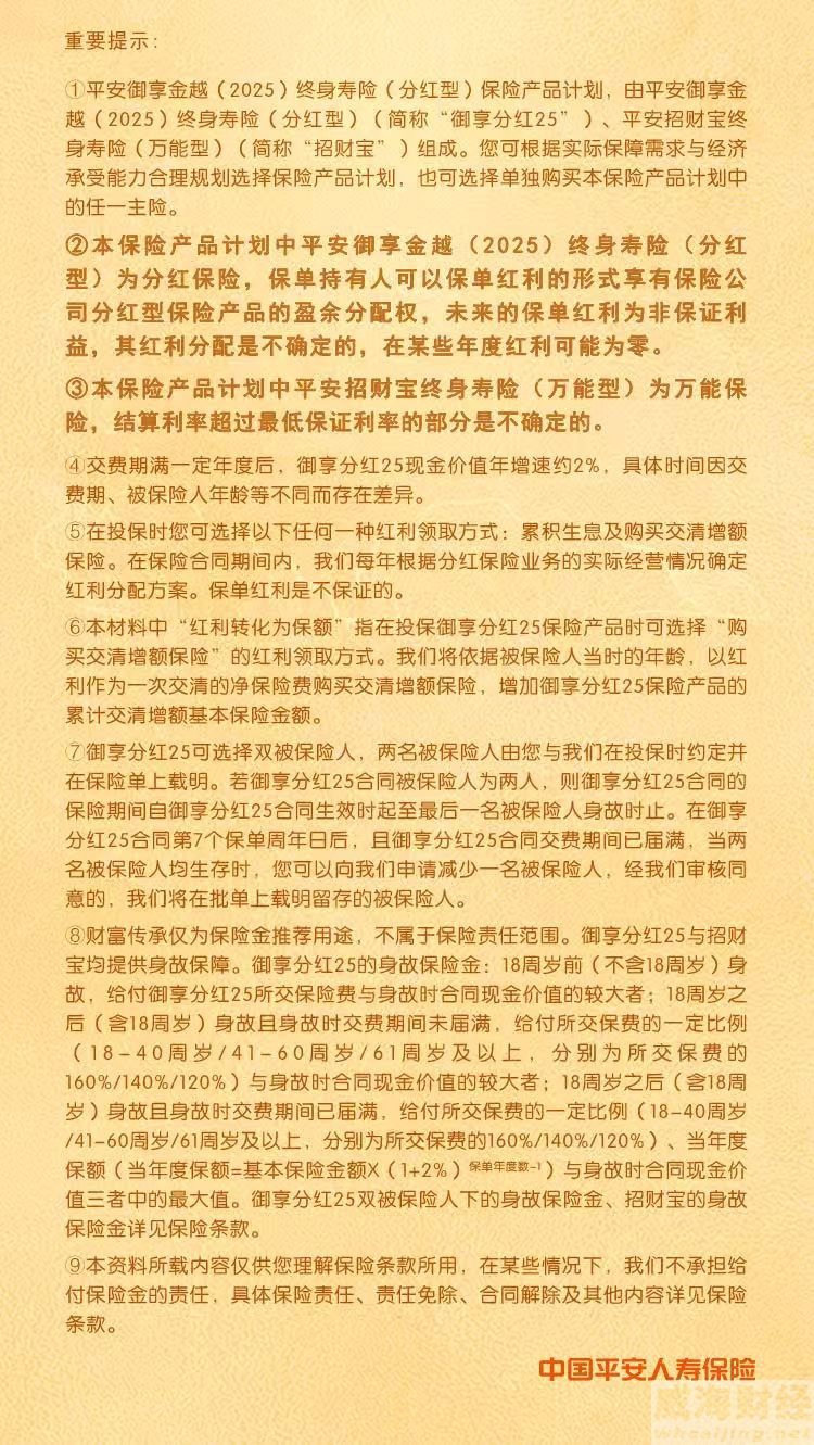 平安御享金越(2025)终身寿险(分红型)保险产品