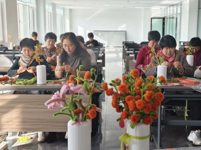 松海社区活动室里,居民们正用指尖创造着美丽。在“巧手迎新年”手工课上,居民们用一根根普通的扭扭棒,创作出一束束栩栩如生的节日花朵。“这是我第一次做手工花,准备放在新年餐桌上!”郭阿姨举起自己的作品,脸上洋溢着成就感。